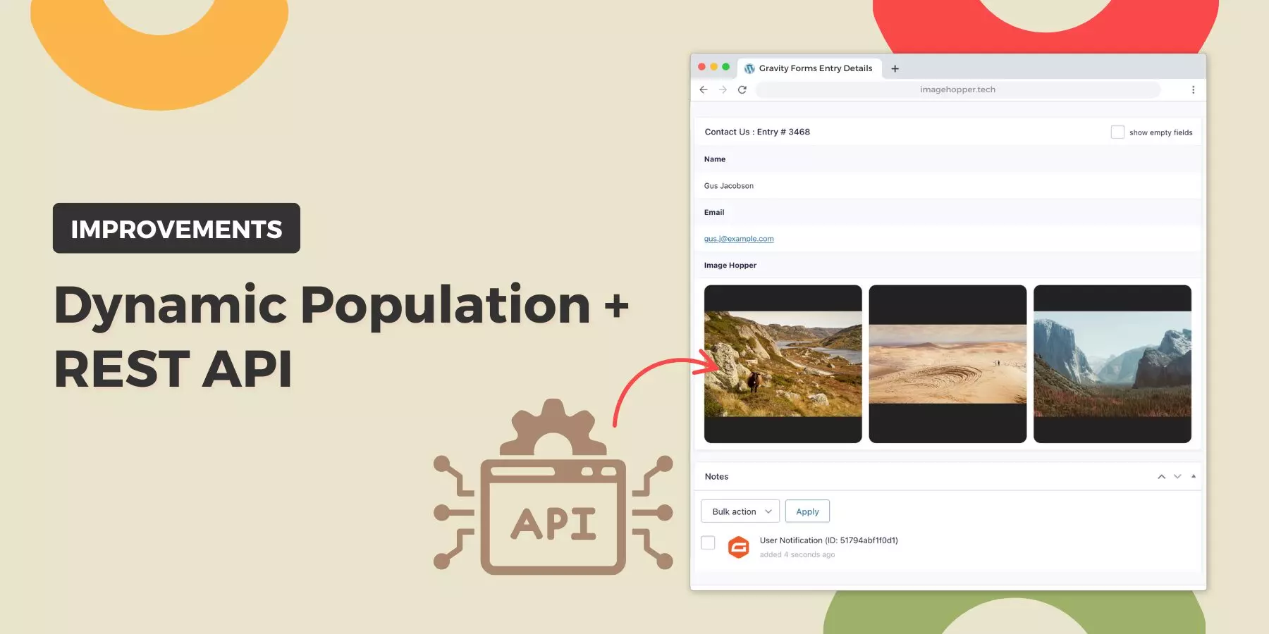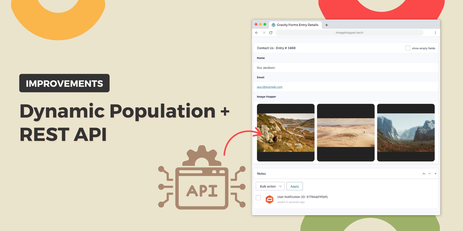 This release adds support for Gravity Forms REST API submissions, the Dynamic Population field setting, and adds compatibility with Gravity Forms 2.9.18.