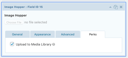You can specify the maximum number of images that can be uploaded to an Image Hopper field. You can leave this setting blank for unlimited files, just bear in mind the actual number of files permitted may be limited by your server’s specifications and configuration.